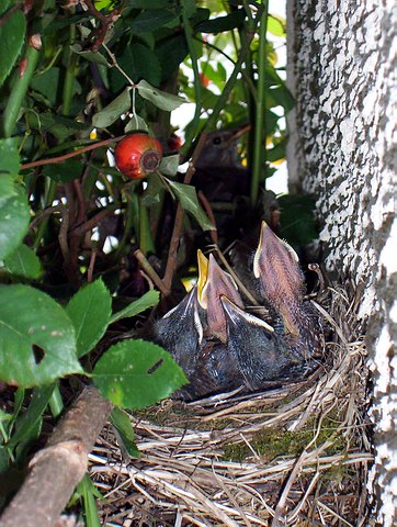 Dans le rosier de ma belle-mère, savez vous quoi qui n'y a ? Des petits oiseaux qui attendent que je leur foute la paix pour pouvoir manger... (KODAK CX4230) georges.devacht@wanadoo.fr